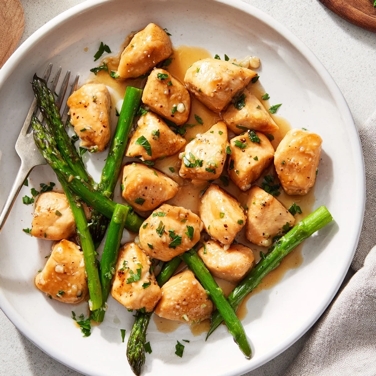 These succulent chicken bites deliver restaurant-quality flavor with minimal effort. The secret lies in searing seasoned chicken until golden, then creating a luscious garlic butter sauce in the same pan. Fresh asparagus adds bright crunch and vibrant color to this complete meal.