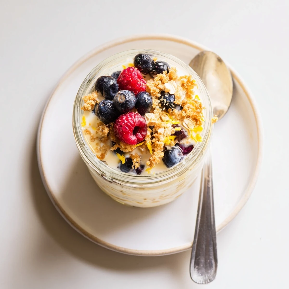 Wake up to the refreshing taste of lemon cheesecake in a wholesome breakfast format. These overnight oats combine old-fashioned rolled oats with Greek yogurt, cream cheese, and fresh lemon zest for a creamy, protein-packed morning meal that tastes like dessert.